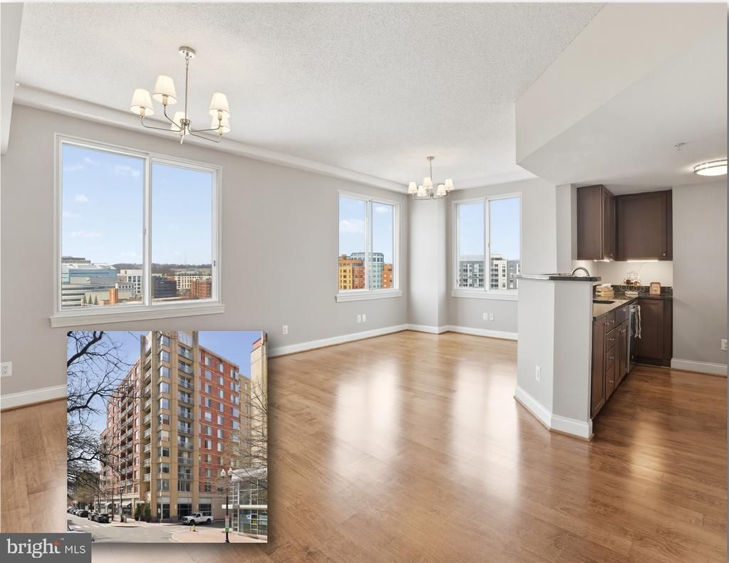 What an amazing place to call home in the center of vibrant Clarendon! The gracious entry hallway leads to a city vista through large windows that provide expansive views in every room. Enjoy 9-foot ceilings in this penthouse-level, 11th-floor unit. The refinished hardwood floors add a golden glow and warmth to the living areas. The almost 25' long living/ dining area offers many planning options for designing your living! Located just two blocks from the Clarendon Metro, with Whole Foods and Trader Joe’s right around the corner, along with restaurants and shopping at The Crossing Clarendon. This amenity-rich home with low condo fees includes a rooftop pool, fully equipped fitness center, library, business center, cinema room, and a gracious lobby with full-time service. The building and garage feature secure fob access, along with on-site management. A relaxing courtyard in the center of the building offers a peaceful green space for gathering and unwinding. The kitchen offers exceptional cabinet storage and counter space, along with brand-new stainless steel appliances. Features include granite countertops, a double deep-bowl stainless steel sink, under-cabinet lighting, and a brand-new gooseneck faucet for easy cleanup. The two bedrooms are located on opposite sides of the condo, providing privacy for guests or a home office. Both feature upgraded carpet and padding. The nearly 15-foot-wide primary bedroom easily accommodates a king-size bed and includes a brand-new chandelier. The primary walk-in closet offers ample shelving and storage. The primary bath features double sinks, granite countertops, new lighting and faucets, 12-inch ceramic tile, and a large walk-in shower. Truly turnkey! Freshly painted (3/2026) with refinished hardwood floors (3/2026). Kitchen appliances—refrigerator, stove, microwave hood, and dishwasher—were all replaced in 3/2026. HVAC (9/2022), water heater (3/2026), and stacked front-loading washer/dryer (approx. 2019). noise reducing storm windows installed. One reserved underground parking space (B3-306) is included. Commuting is a breeze with the Clarendon Metro just two blocks away, and quick access to I-395, I-66, the Pentagon, Washington, DC, Reagan National Airport, and Amazon HQ2. Closeby are GMU, Marymount & INOVA,